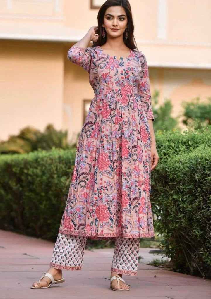 Refresh your everyday ethnic collection with this beautiful Pink Floral Anarkali Kurta Set, designed for women who love elegant prints and comfortable daily wear. Crafted from soft and breathable cotton, this outfit ensures perfect comfort for long hours ideal for office, college, shopping, and casual outings.