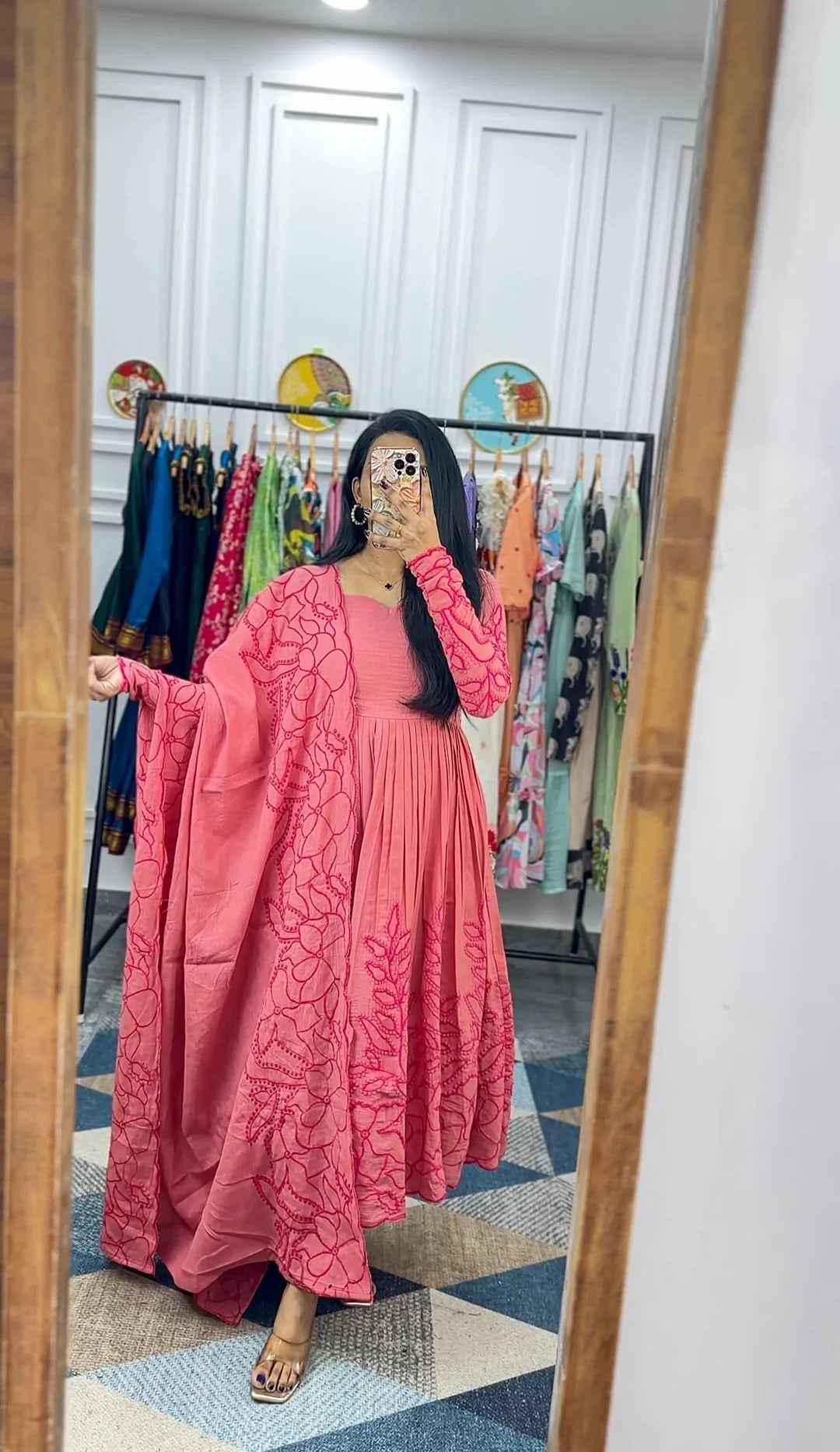 Perfect for weddings, festive celebrations, sangeet nights, mehendi functions, receptions, and high end parties, this pink embroidered Anarkali is a showstopper.
